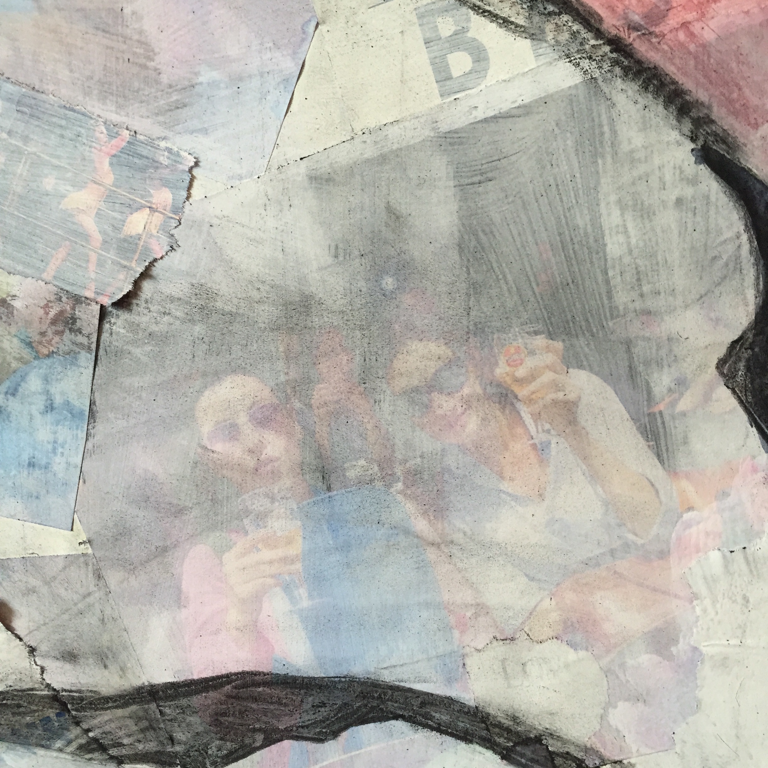 The background to the picture is a collage made up of both photos of Sam and quotes or words that I felt resonated her vibrant character. The idea was that from a distance it’s Sam..up close it’s what made her who she was..and each time you look, you should see something different.