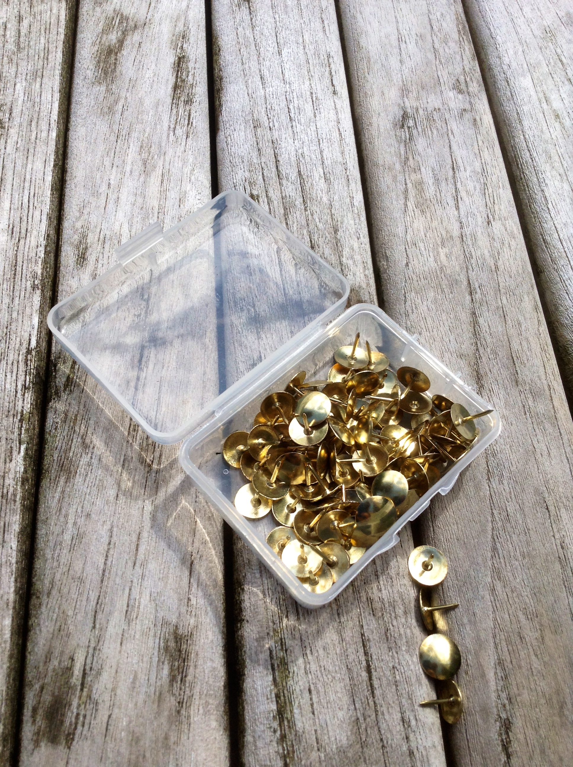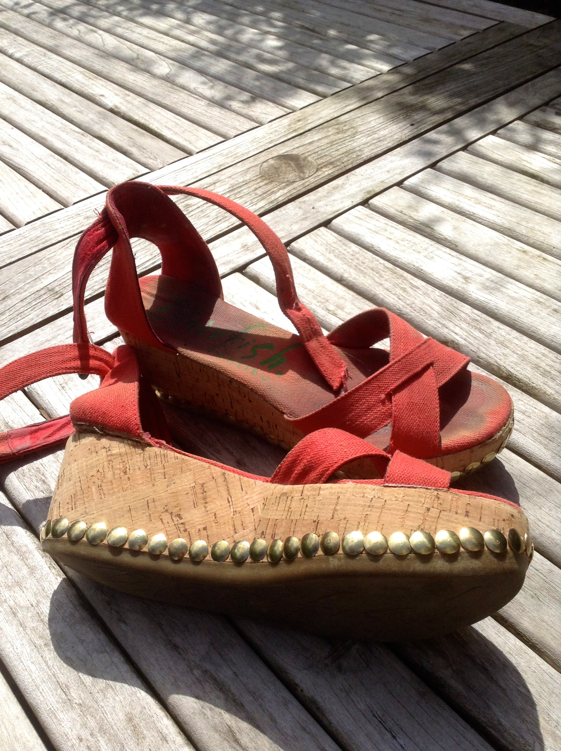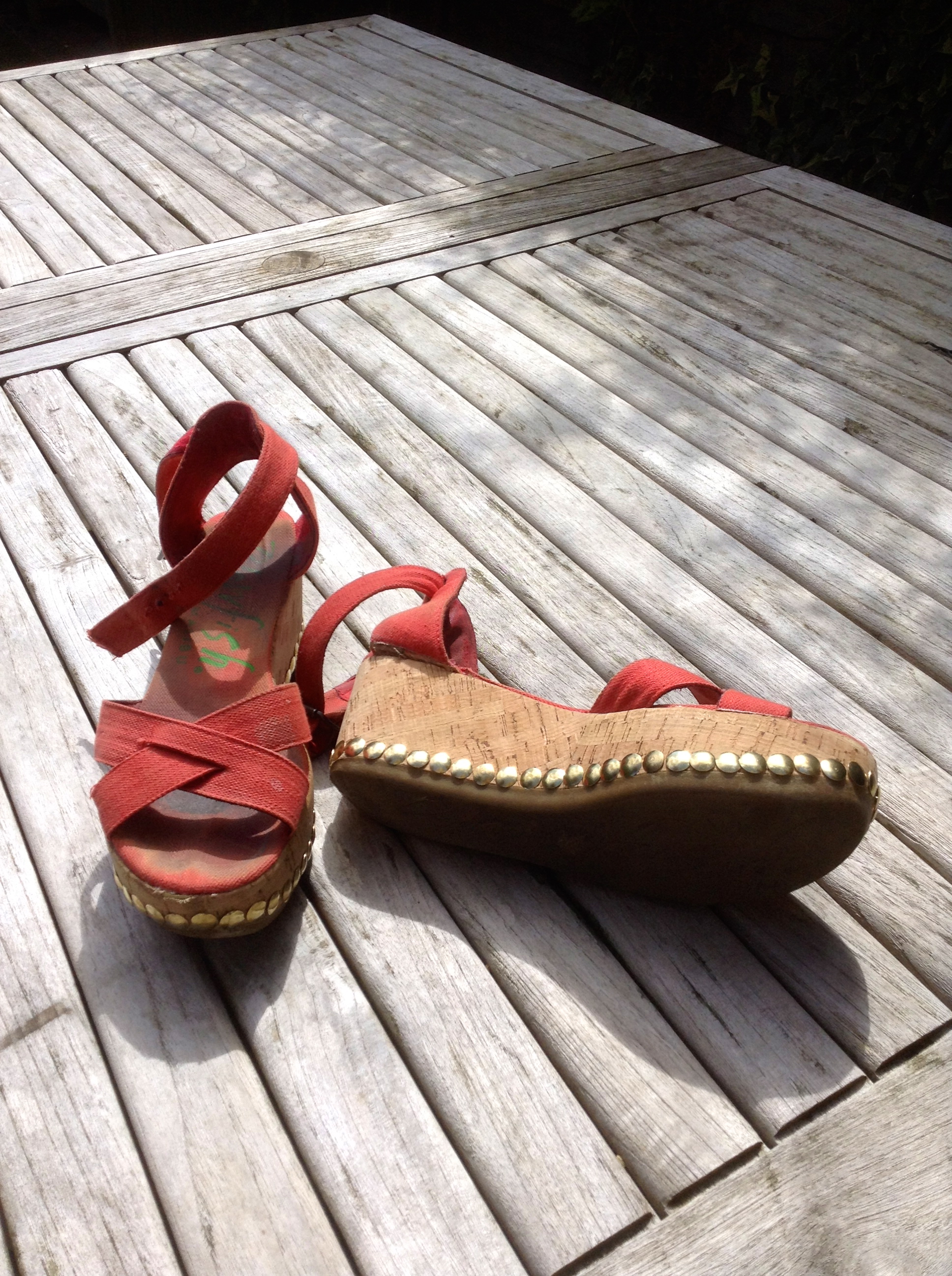 Do you remember this post? An up-cycle of a well-loved pair of shoes with a row of brass thumb tacks..well, they’ve proved their worth and survived for another year (just – too comfortable to consign till the very, very end) and remarkably most of the pins stayed in..there are a few gaps..