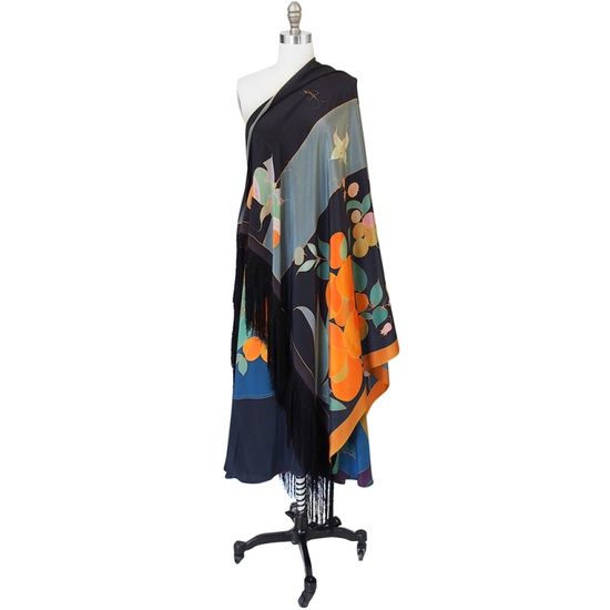 1970s Hand painted silk skirt and shawl.