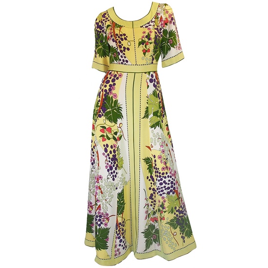 1960s Bessi silk flowers and grape dress.