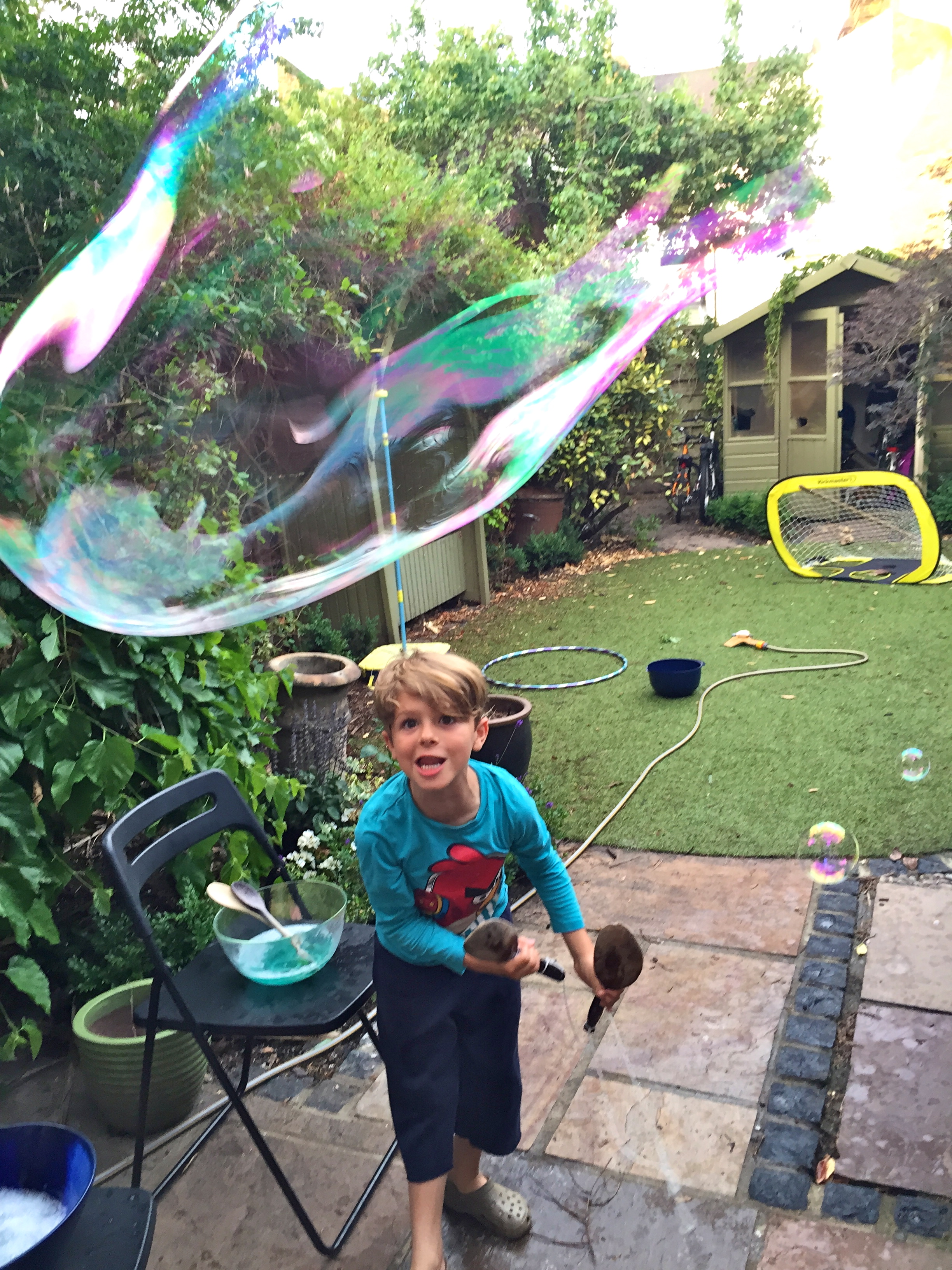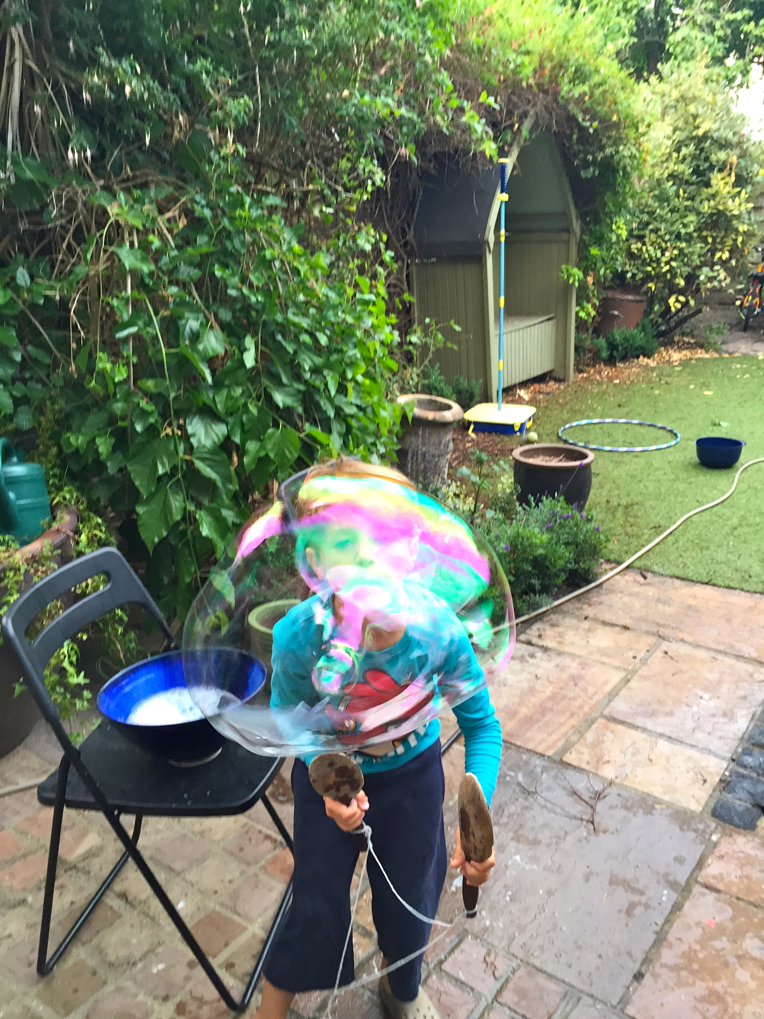 (The bubbles wands are simply made from wooden spoons and cotton string, tied in a triangular shape with a weight (keys/keyrings work well) at the bottom).