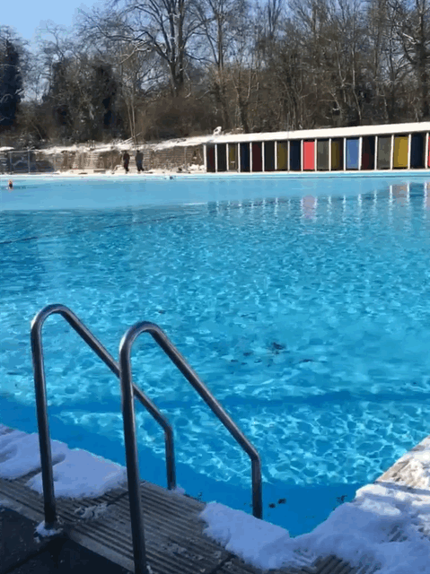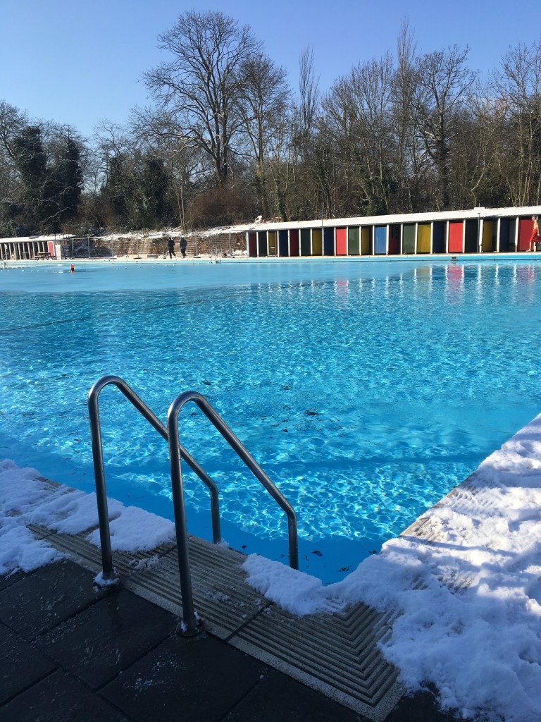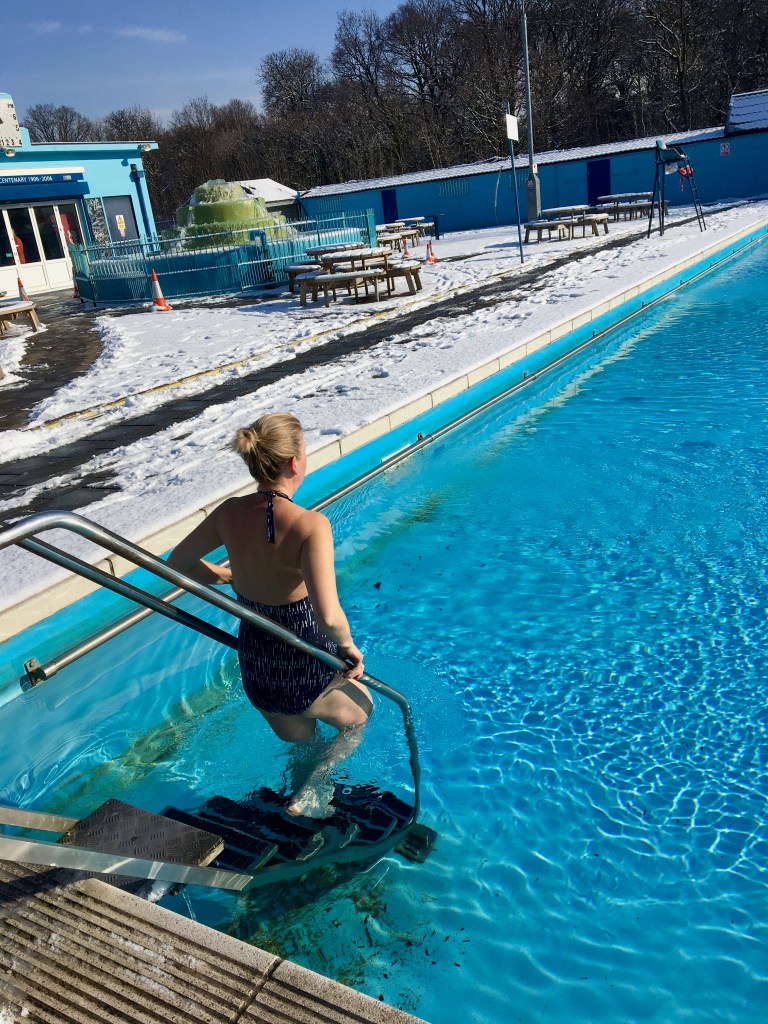 There was this post about the cold water challenge three of us set ourselves in September: Could we swim in the open air unheated pool without wetsuits through the winter? Then last week, the Beast from the East dropped the temperature and raised the question could we rise to the ultimate challenge in the snow?