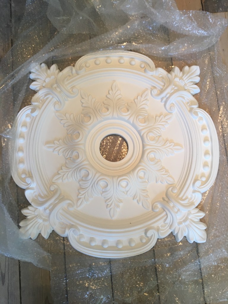 The inspiration for the room was Victoriana meets Spitalfields, and whats more Victoriana than an ornate ceiling rose?