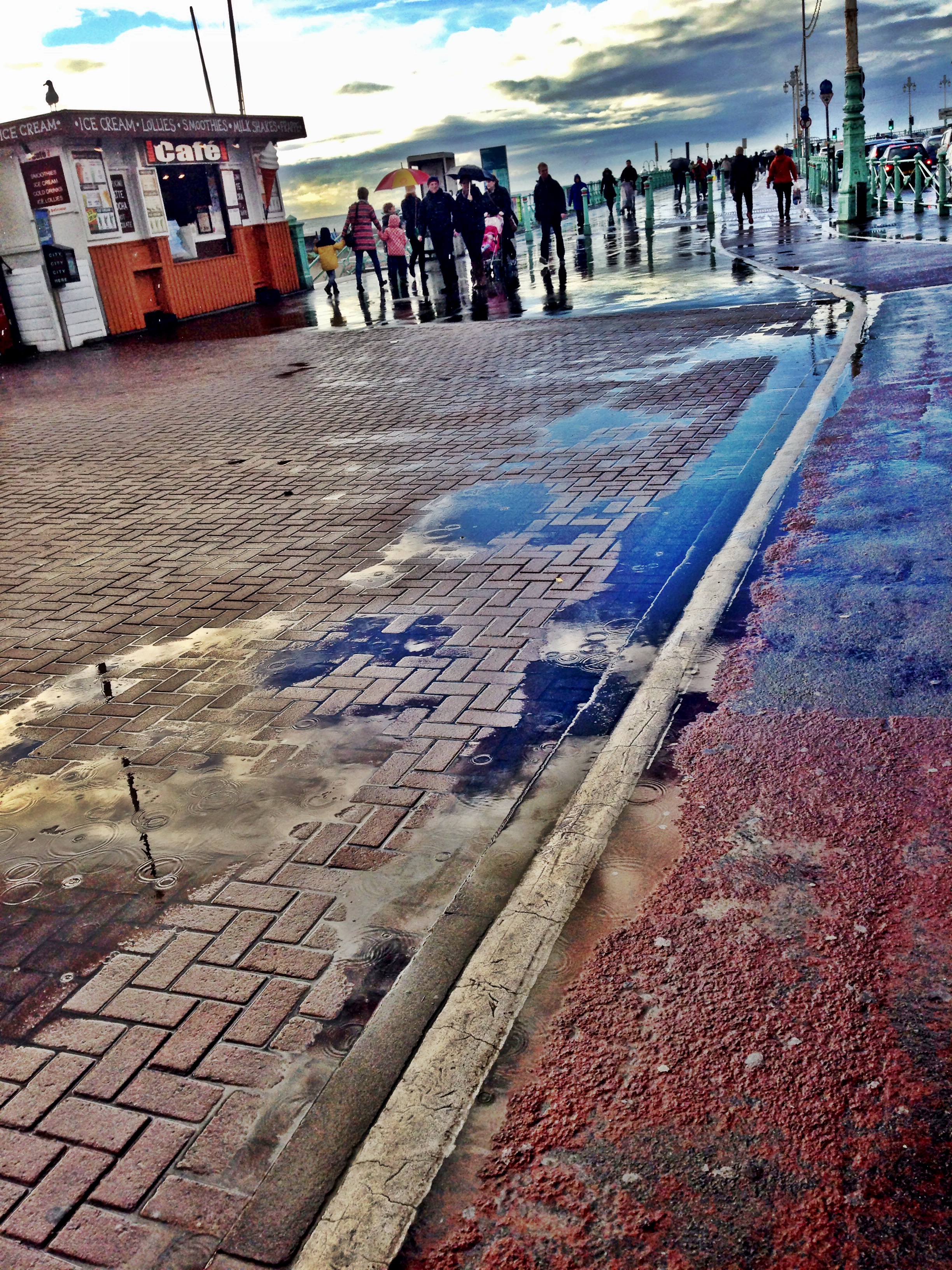 Rain, sun, blue, black all jumbled together.