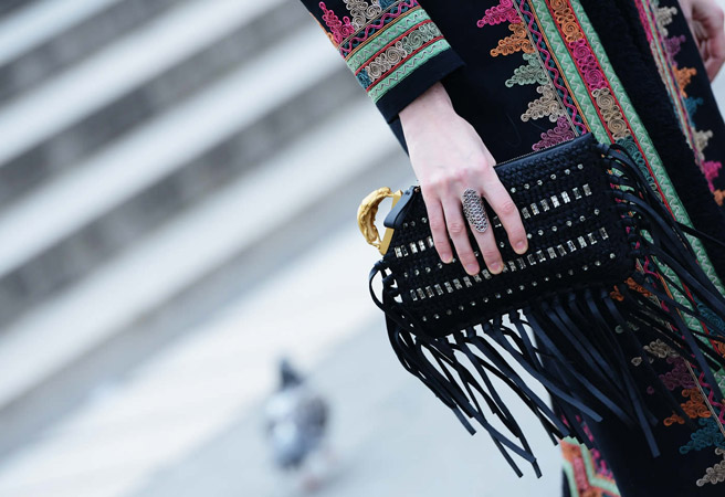 It’s the little things that make the street style photos of fashion week so fascinating..the glint of an unusual piece of jewellery sparkling in the sun, a plait of hair coiled like a blonde horsewhip on a cashmere shoulder..or just a casual chic humour that brings an outfit together in a shower of golden sparks..