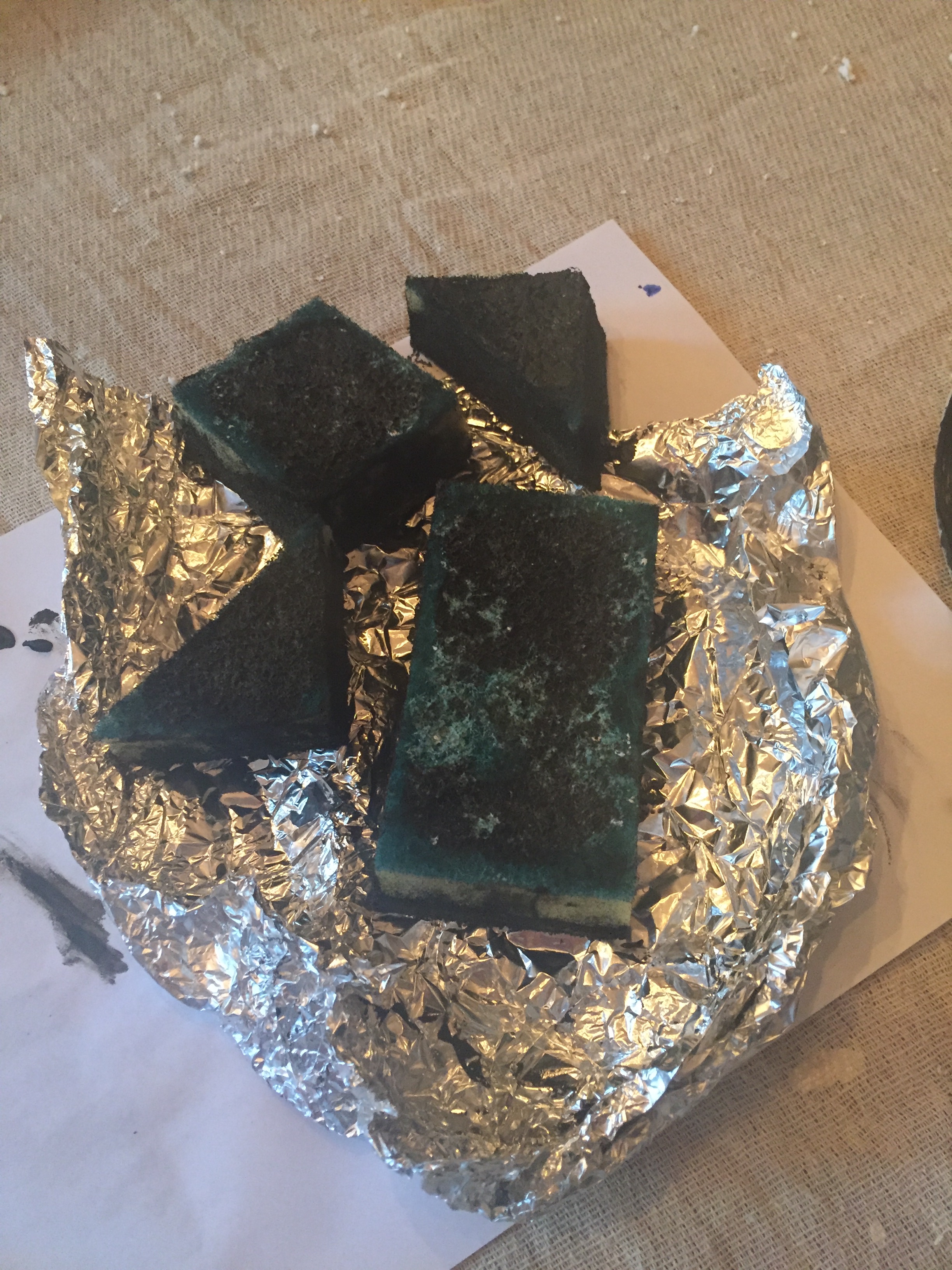 Despite just using the basics: Lining paper, leftover emulsion paint and cut up sponges – has worked a treat.