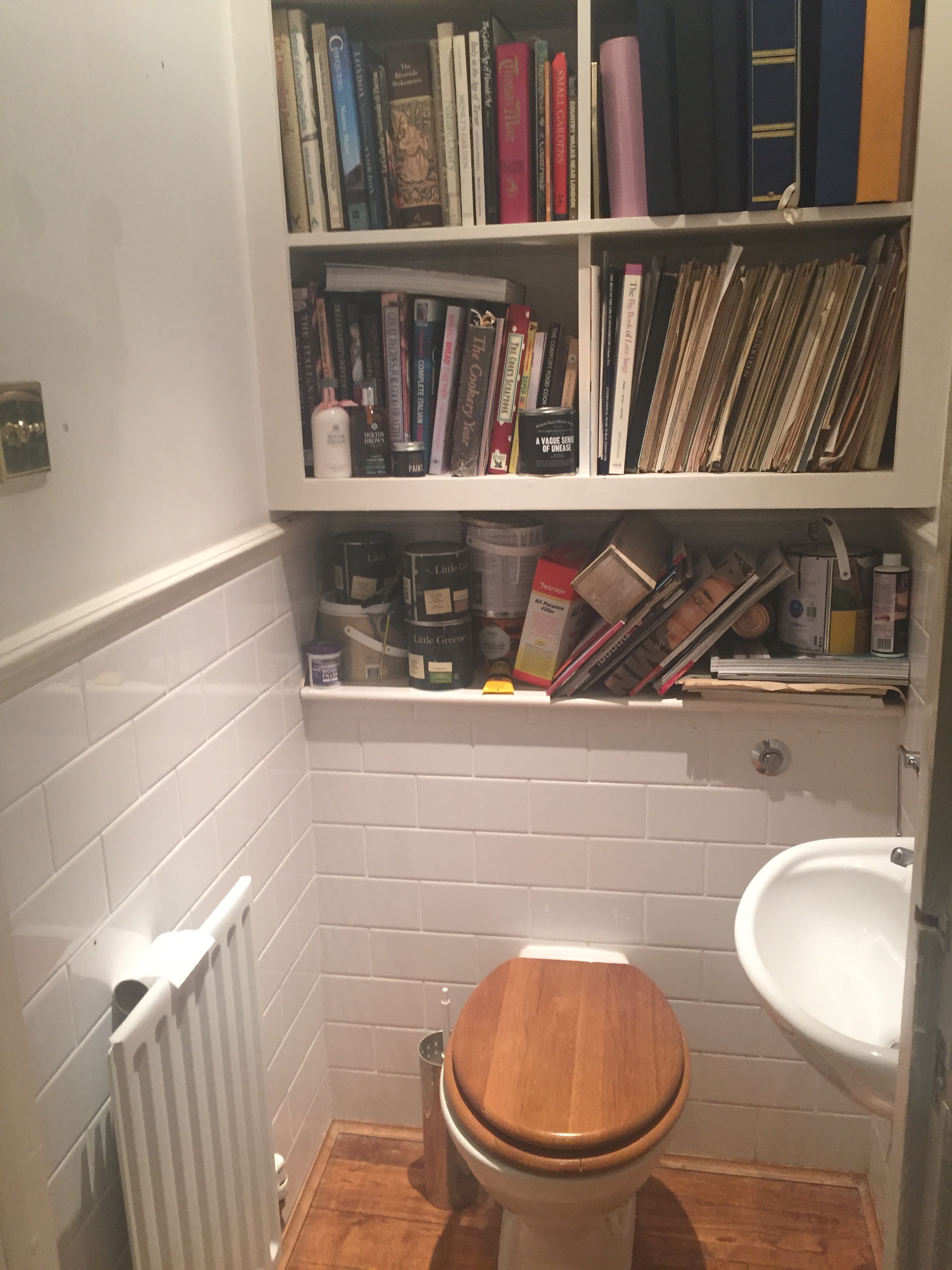 This was the before state of the downstairs toilet. A mini dumping ground of DIY and general clutter.