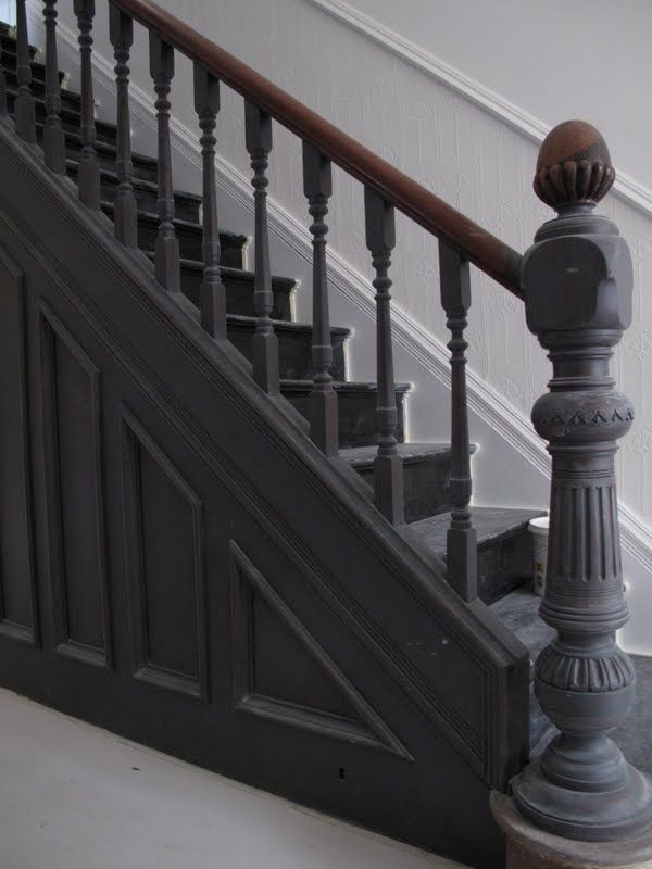 Now to decide on the colourways for the hall. This isn’t my hall, just a picture for inspiration, but I know I want the woodwork to be dark, virtually black, except how far do you go? The newel post in this picture is epic, but I can’t help feel they missed a trick not painting everything that dramatic thundercloud grey up to and including the dado. Does that mean below the dado has to be dark as well? The radiator cabinet? It’s a dilemma..