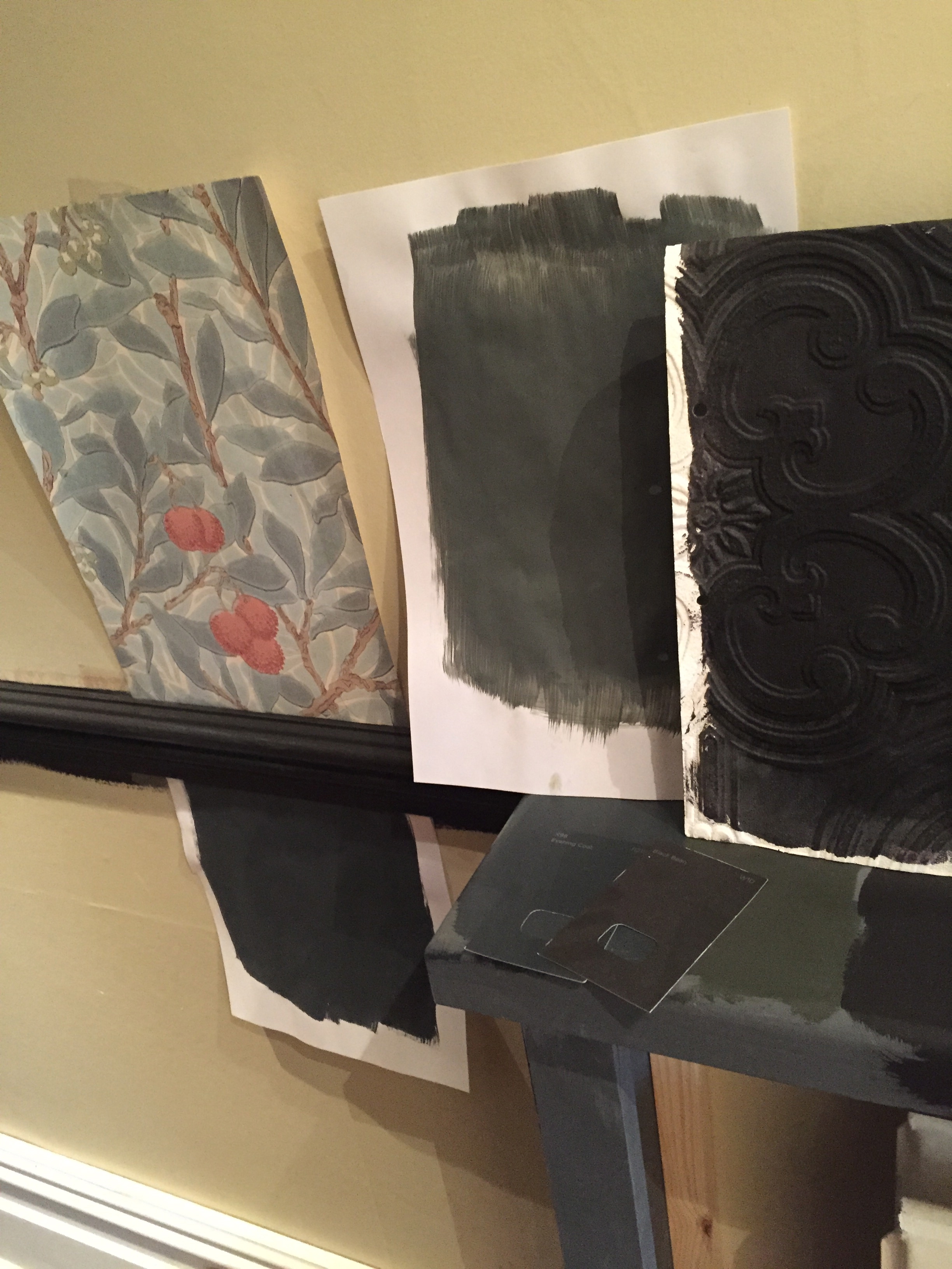 And wallpaper is a cert. William Morris if I have my way, but not this one, though the black wood looks magnificent against it.